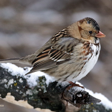 The visitor centre parking lot is host to many chickadees, blue jays, tree sparrows and cardinals as well as woodpeckers and the occasional white and red breasted nuthatches and juncos. As long as there is open water in the area of Nairne Island there may be mute or Tundra swans with the smattering of mallards and Common Mergansers or Common Goldeneye. Just west of the Sanctuary we have had a rare visitor from the west in the form of a Harris`s Sparrow which has had a lot of bird watchers put it on their Ontario life lists. The outer limits of S.D. & G have been graced with a rare Northern Hawk Owl and the usual sprinkling of Snowy owls in winter. We have had pairs of bald eagles seen on occasion.